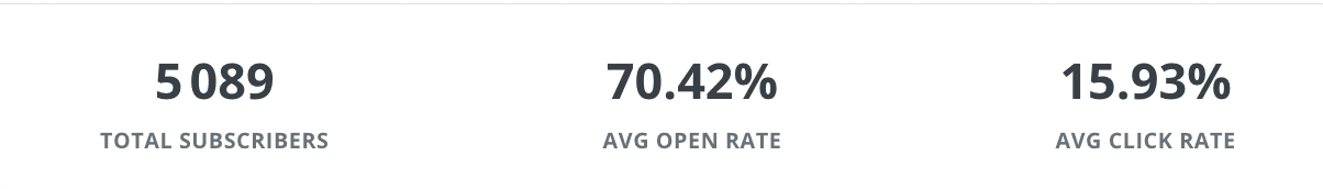Pour Deviens Génial en copywriting (la newsletter que vous êtes en train de lire :D), on est 5,000 pour un taux d’ouverture de 70%