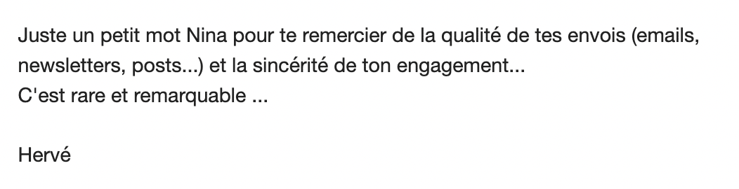 Avant de commencer, je te partage le mot de Hervé qui m'a donné le :D