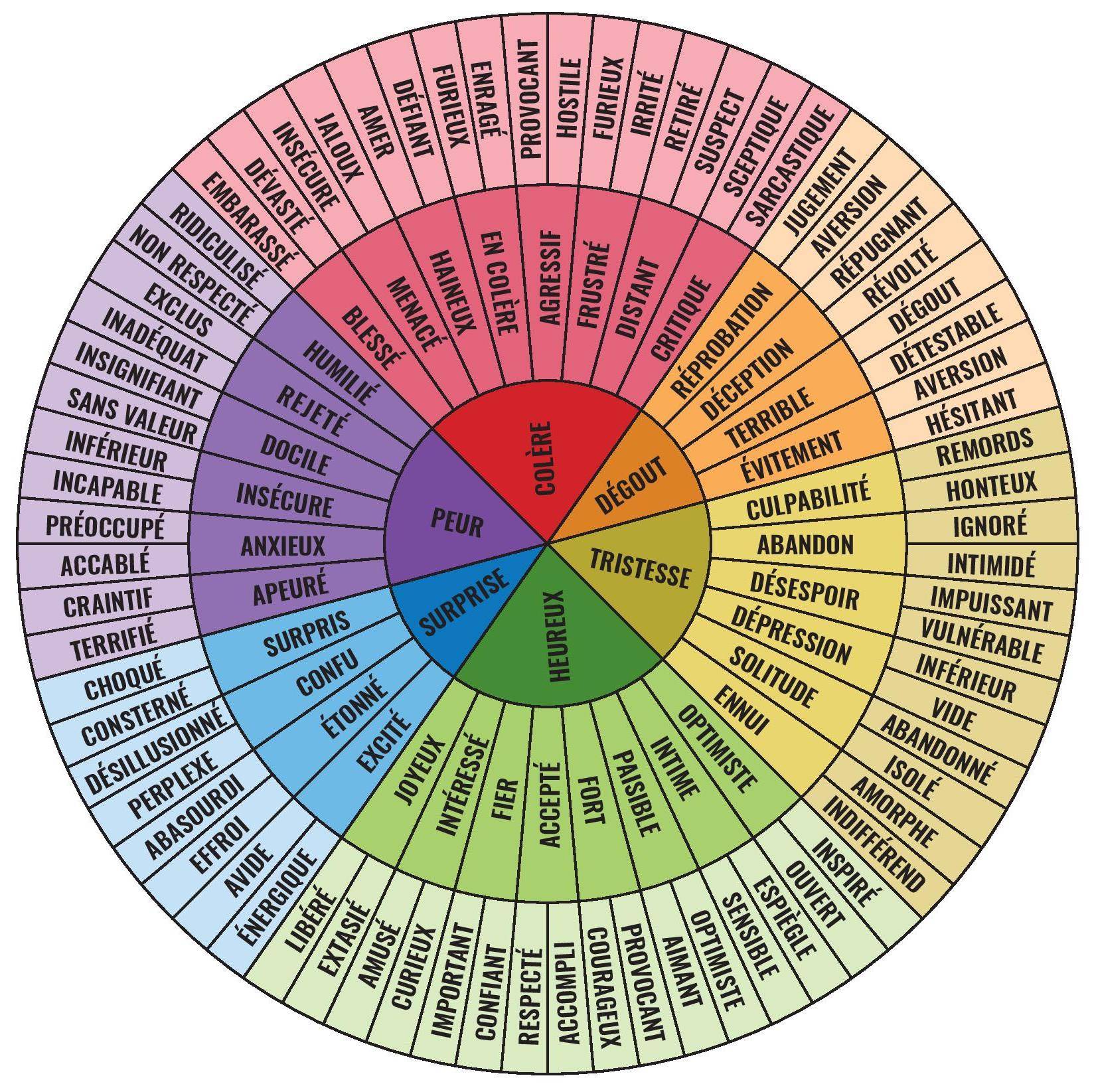 Voici donc un panel de nuances d'émotions. Amusez-vous à en choisir une et à écrire selon cet axe.